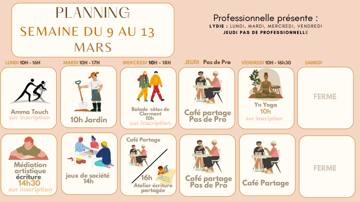 Mercredi 11 mars : atelier écriture partagée, seules les personnes présentes depuis le début de cet atelier sont admises.
